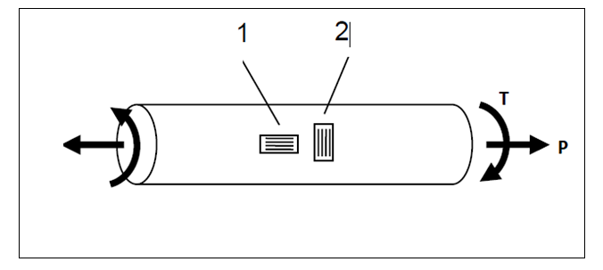 Two strain gauges (K = 2.0) are bonded to the bar in the Poisson configuration and connected into a Wheatstone half-bridge configuration using arms 1 and 2, as indicated.