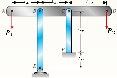 Assume: LAB = 1.8 m, LBC = 1.8 m, LCD = 2.3 m, LCF = 1.6 m, LEF = 0.9 m.