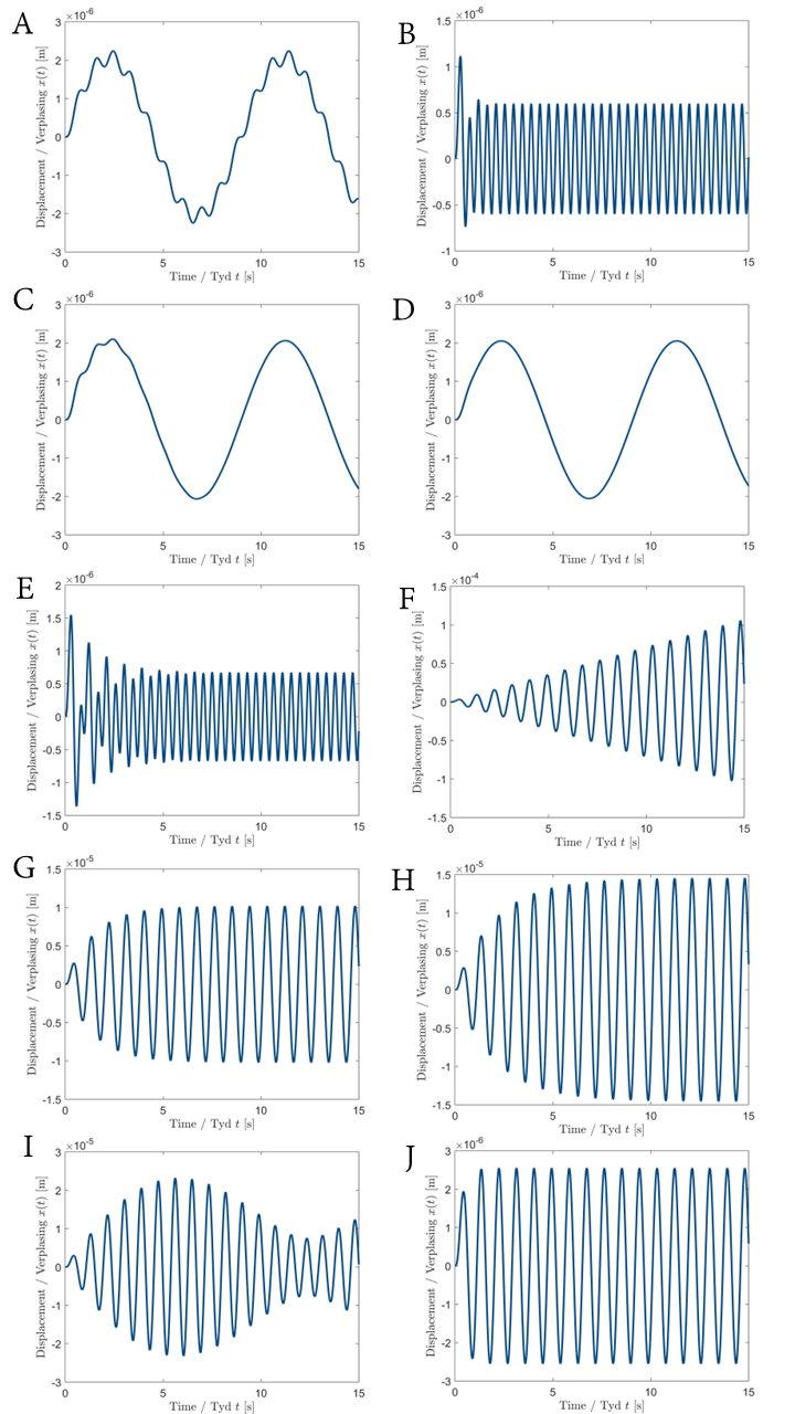 Match one of the forced vibration responses (A - J) to each of the following forcing functions and damping values.