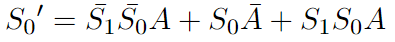 Derive the next state logic for S_0' (i.e. the least significant bit of the next state S')