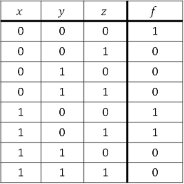Vir die funksie what deur die volgende waarheidstabel vertoon word: