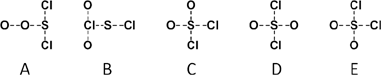 Parmi les diagrammes de connectivité ci-dessous, identifiez tous ceux qui correspondent à la formule O2SCl2 ?