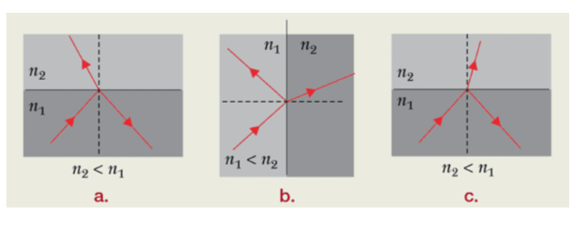 Quand de la lumière passe d’un milieu à l’autre alors, selon l’angle d’incidence et les indices de réfraction,…
