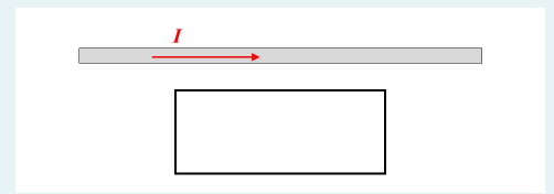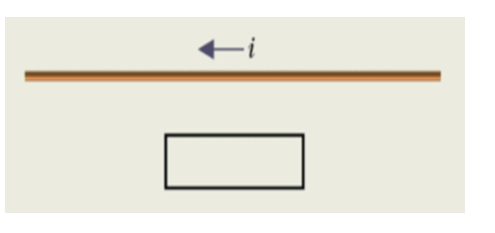 Un cadre métallique s'éloigne (vers le bas sur la figure) d'un long fil rectiligne dans lequel circule un courant I vers la droite. Le courant induit dans le cadre métallique est alors