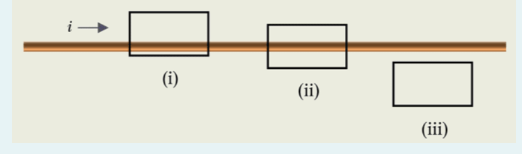 La figure suivante illustre trois boucles identiques près d'un long fil parcouru par un courant i. Classez les boucles selon un ordre décroissant du flux magnétique à travers les boucles.