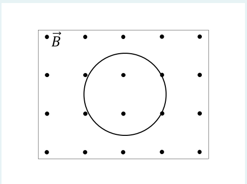 La boucle de la figure ci-dessous est immobile dans un champ magnétique uniforme et sortant. L'intensité du champ magnétique augmente dans le temps. Le courant induit est alors