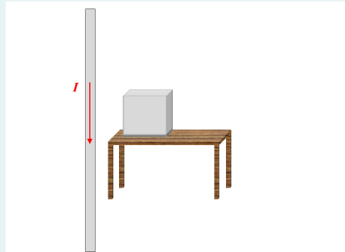 On dépose un gros bloc métallique à proximité d'un long fil rectiligne dans lequel circule un courant constant vers le bas. Parmi les énoncés suivants, lequel est vrai?