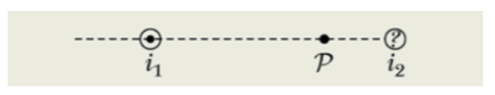La figure suivante montre deux longs fils parcourus par des courants perpendiculaires à la page. Le champ magnétique résultant est nul au point P.
