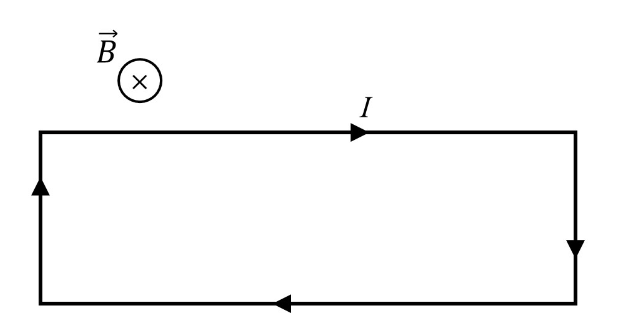 Le cadre illustré sur la figure ci-dessous est parcouru par un courant de grandeur I circulant selon l'orientation indiquée. Un champ magnétique entrant et uniforme règne dans tout l'espace. La force magnétique résultante sur le cadre est alors