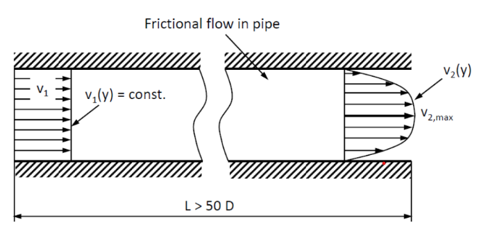 Figure 1 below shows a pipe of length L, (with L >>D) and with viscous flow inside. The flow is fully developed