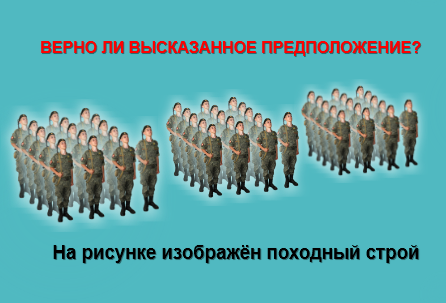 Установленное Уставом размещение военнослужащих, подразделений и воинских частей для их совместных действий в пешем порядке и на машинах.