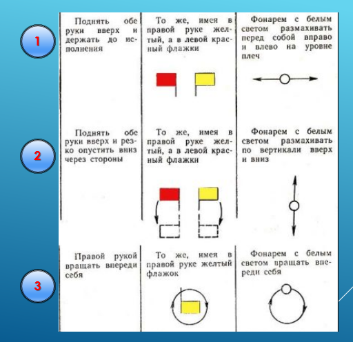 Это сигнал соответствует команде "Все кругом"