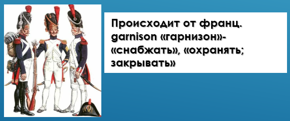 ОПРЕДЕЛЕНИЕ ГАРНИЗОНА: воинские части, в том числе входящие в местные гарнизоны, расположенные, как правило, на территории одного субъекта Российской Федерации, а в отдельных случаях - на территории одной административно-территориальной единицы или на территориях нескольких его административно-территориальных единиц.