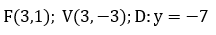 Encuentre el foco, vértice y directriz de la parábola x2-6x+16y-39=0