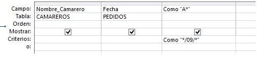 (Considerar que el campo Nombre_Camarero almacena tanto el Apellido y el Nombre de los camareros de un restaurante)