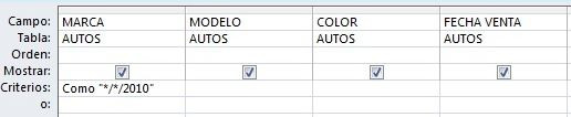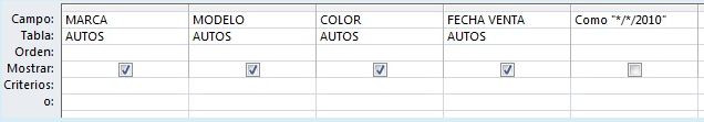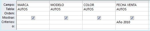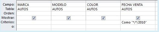 Mostrar la Marca, Modelo y Color de los autos que fueron vendidos en el año 2010