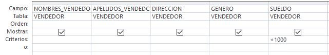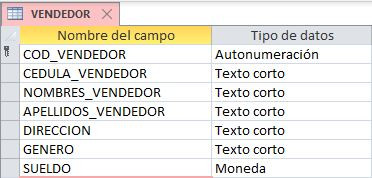 Se tiene la tabla VENDEDOR de una Concesionaria de Vehículos con el siguiente diseño:
