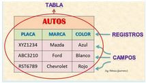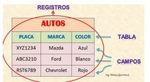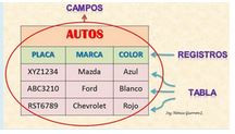 ¿Cuál de las siguientes imágenes ilustra correctamente los elementos de una base de datos? (Tabla, Campos, Registros)
