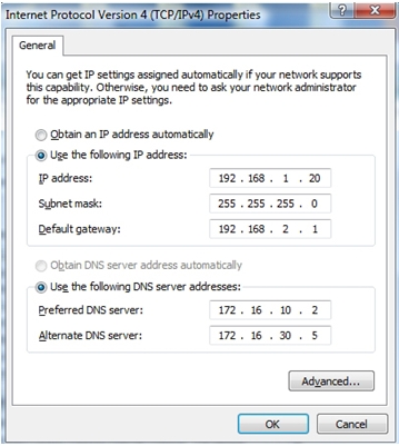 Подивіться на зображення. Технічний фахівець налаштував робочу станцію користувача за допомогою зазначених відомостей. І хоча користувач отримує доступ до всіх ресурсів локальної мережі, він не може підключитися до жодного інтернет-сайту ні за допомогою доменних імен, ні за допомогою IP-адрес. У чому причина неполадки?
