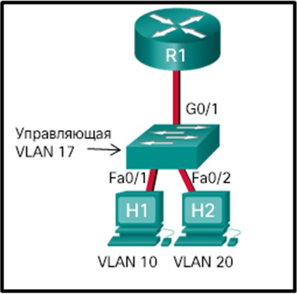 Подивіться на рисунок. Якщо враховувати кращі практики Cisco, який режим комутатора необхідно використовувати для призначення порта G0/1?