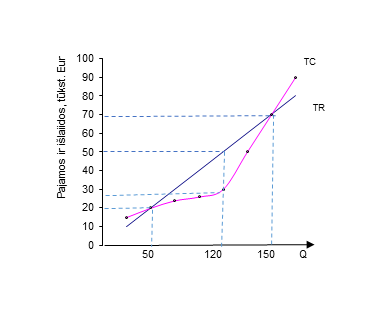 Kiek produkcijos turi gaminti įmonė, kad uždirbtų 20 tūkst. Eur pelną?