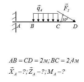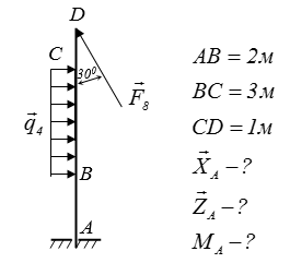 Визначити реакцію в опорі А і зусилля у стрижні KD, якщо a = 3 м, в = 2 м, q = 2 kH/м,