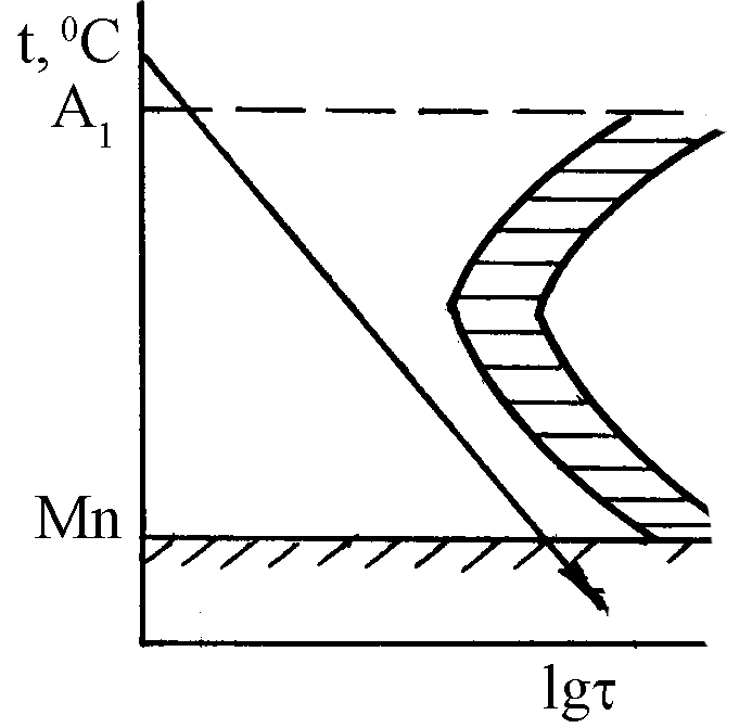 Який клас легованих сталей утворюється під час введення легувальних елементів, які спричинять утворення такої діаграми ізотермічного перетворення і за такої швидкості охолодження?