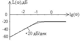 Логарифмічна амплітудно-частотна характеристика якої ланки показана на рисунку?