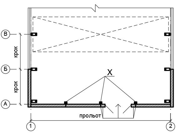 Як називаються конструктивні елементи, позначені "Х" на плані?