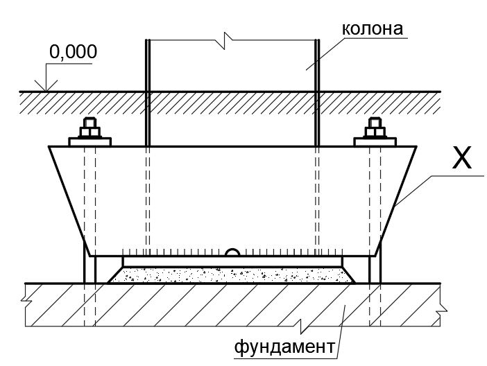 Який елемент, позначений "Х", показаний на малюнку опирання сталевої колони на фундамент?