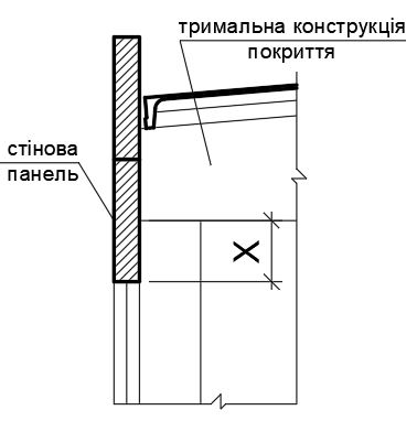 Яка віддаль (позначено "Х") приймається від рівня низу тримальної конструкції покриття до низу уніфікованих легкобетонних стінових панелей одноповерхових виробничих будівель, згідно наведеного малюнку?