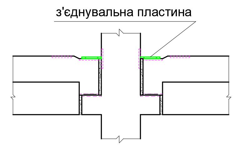 Яке значення вставки "С" між осями у деформаційному шві, згідно наведеного малюнку?