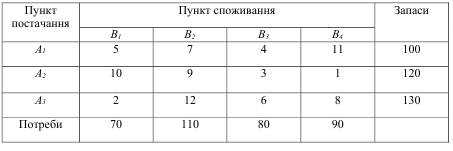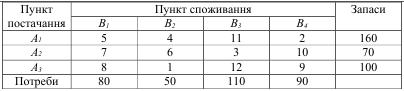 транспортній задачі й обчислити вартість перевезень:
