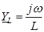 Комплексну провідність котушки індуктивності розраховуємо за формулою: