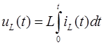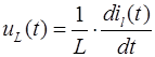 Взаємозв'язок між миттєвими значеннями струму та напруги (компонентне рівняння) лінійної котушки індуктивності описує формула:
