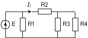 Джерело постійної напруги навантажене резистивним колом. Визначити вказану на схемі величину, якщо відомі параметри елементів електричного кола.
