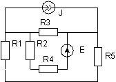 Для вказаної електричної схеми скласти систему рівнянь Кірхгоффа (схему перерисувати, вказавши напрямки струмів, вузли та контури).