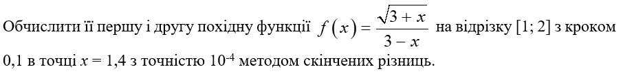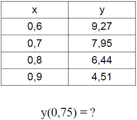 Знайти наближене значення функції заданої таблично з допомогою інтерполяційного поліному Лагранжа 2-го ступеня