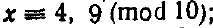 Розв'язати систему конгруенцій (при виборі відповіді вибрати окремо значення x та модуль mod)
