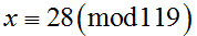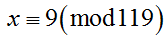 Розв'язати систему конгруенцій (при виборі відповіді вибрати окремо значення x та модуль mod)