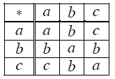 На множині M={a,b,c} задано бінарну операцію (*). З'ясувати: