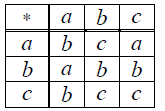 На множині M={a,b,c} задано бінарну операцію (*). З'ясувати: