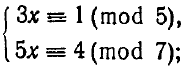 Розв'язати систему конгруенцій (при виборі відповіді вибрати окремо значення x та модуль mod)
