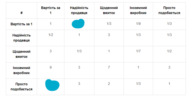 Для матриці парних порівнянь МАІ, який добуток прихованих чисел?