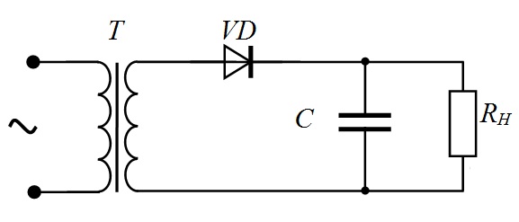 Якою буде постійна складова на виході однопівперіодного випрямляча з ємнісним фільтром при подачі на нього періодичної послідовності імпульсів з параметрами: