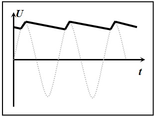 Форма напруги на виході згладжувального фільтра показана на рисунку. U = 12B; U