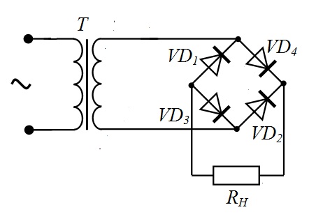 На якому рисунку наведено осцилограму напруги на навантаженні для цієї схеми?