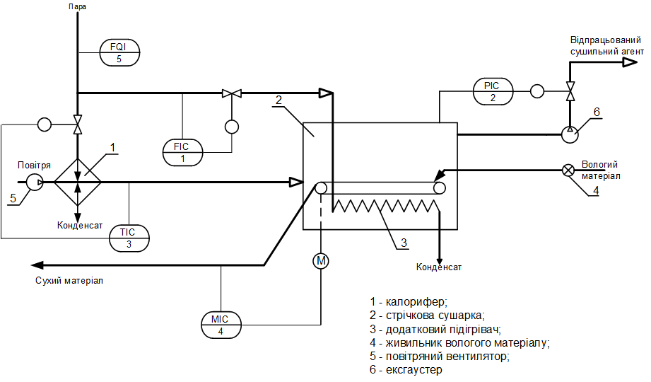 Присвойте позиційне позначення контурам автоматизації приведеним на схемі автоматизації стрічкової сушарки