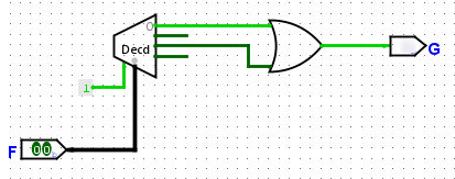 Яке значення на виході схеми G, якщо на вході присутня комбінація F=00