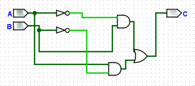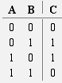 Яке значення отримаємо на виході C схеми, якщо A=0 та B=1 ?